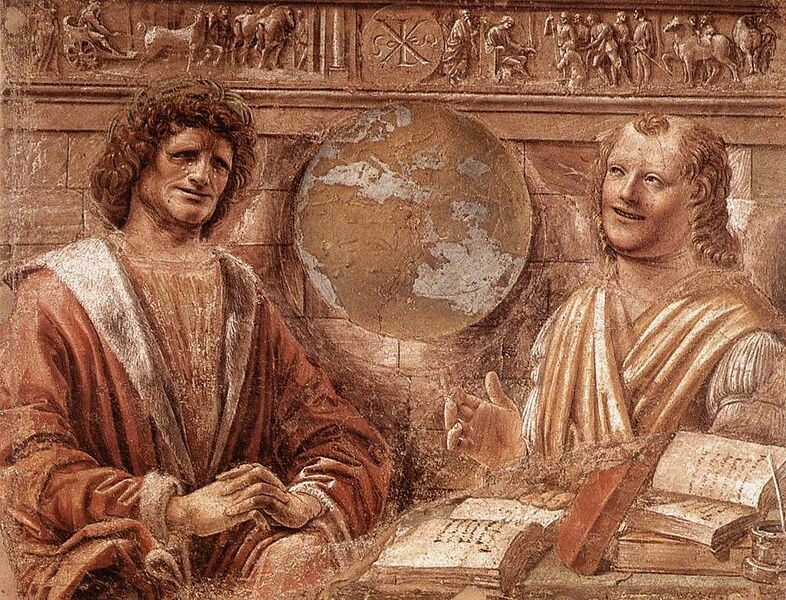 | Donato Bramante, fresco "Heraclitis and Democritus" in 1477. |