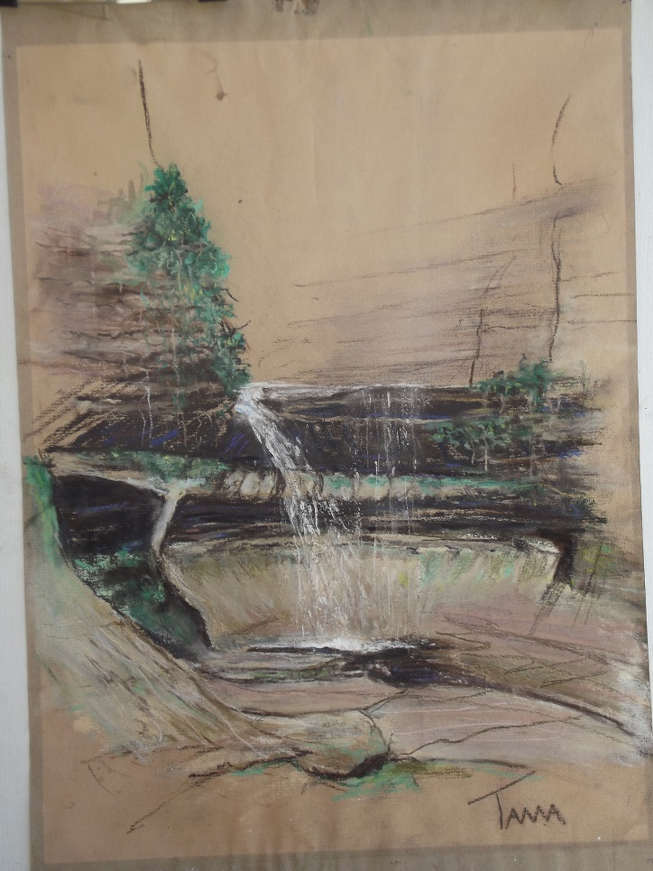 LaSalle Falls in Starve Rock State Park, Pastel, 1984? Plein Air